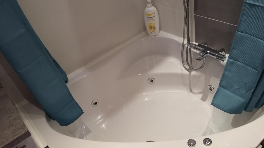 The 3 bedrooms "street side" are individually separated from the living room, one of which has a balcony. Two of them are equipped with a double bed (140x190), and one with two 90x190 beds. The first bathroom has a bathtub with jets, a washbasin and storage space, there is a second shower room and The toilets are separate.