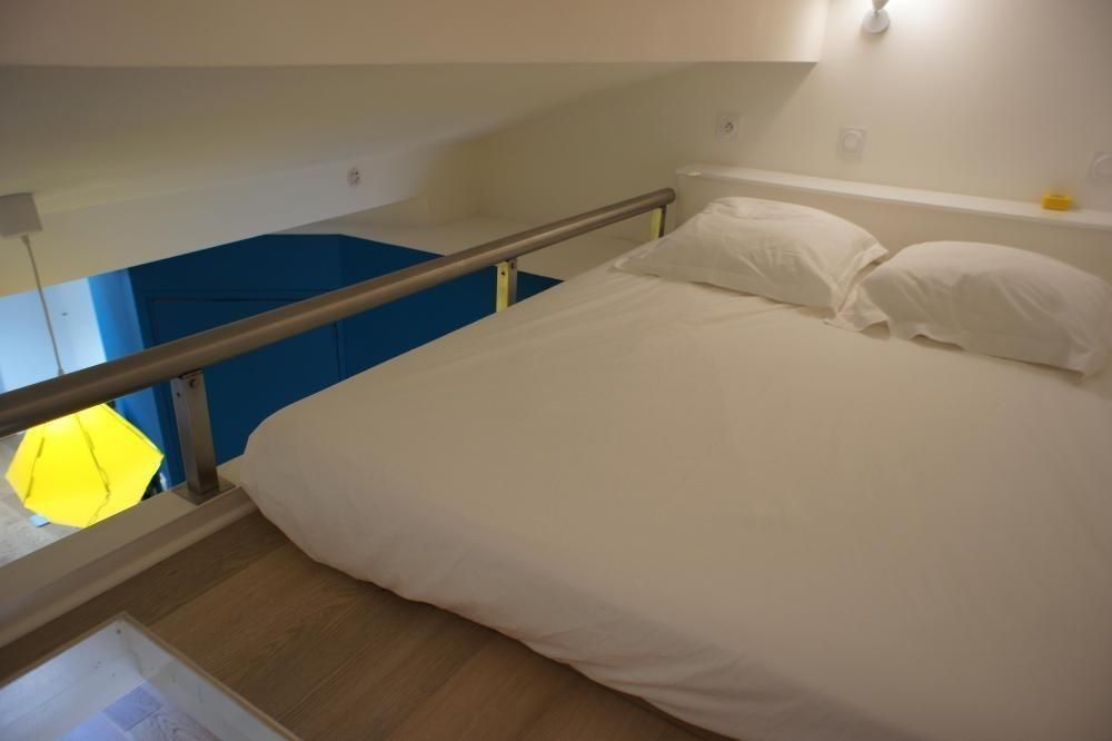 Our air-conditioned studio, nestled at the top of a building in the style of Nice, on the 5th floor, without elevator. As in a love nest, you will enjoy the calm and freshness of this studio superbly refurbished, with taste and quality.